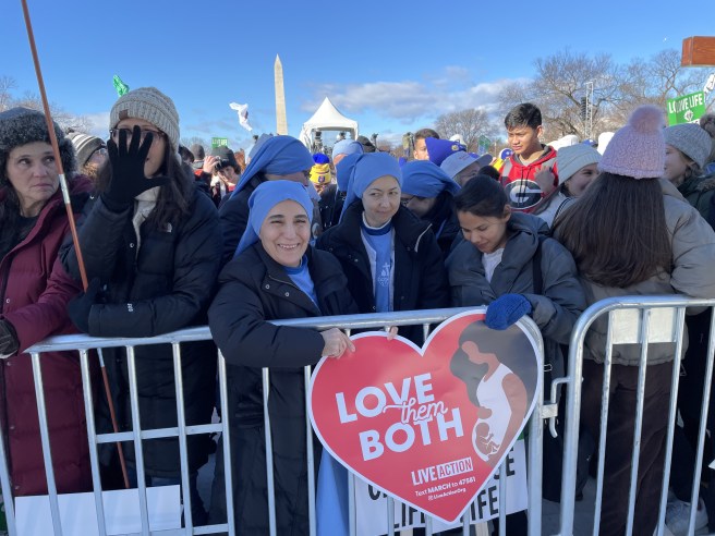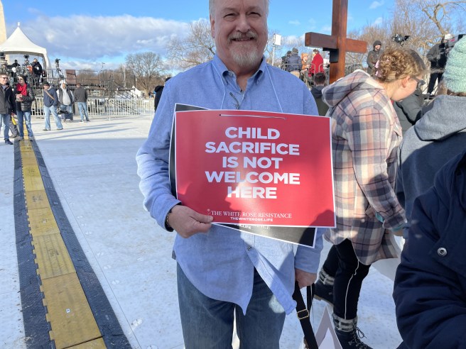 As a Marshall representing the Virginia Knights of Columbus, I had a privileged front row posting right in front of the stage! Highlights for me: the enthusiasm of the young marchers, and especially the inspiring talk from Jonathan Roumie (scroll down to hear it),